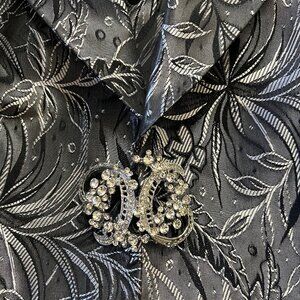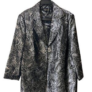 Women's Jacket & Blouse & Skirt- Black With White & Silver