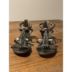 Women’s Gladiator Silver Sandals 9.5 Fringe Reaction Kenneth Cole Beaded 0398