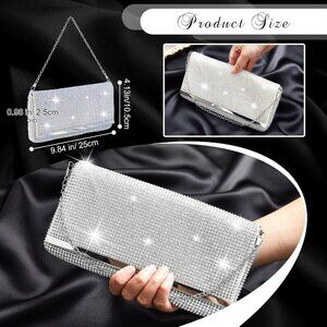 Easy to Carry: the rhinestone clutch is 25 x 10.5 x 2.5 cm/ 9.84 x 4.13 x 0.98 inches, which is in proper size, suitable for most women, can hold most things you need in your daily life, bringing convenience to your daily life