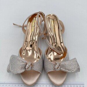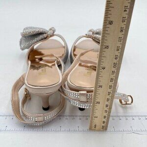 Women's Glitter Rhinestone Bow Heeled Sandal Elegant Crystal Ankle Strap Kitten