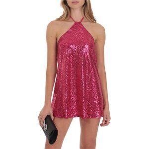 Women's Glitter Sequin Dress Halter Neck Red Pink
