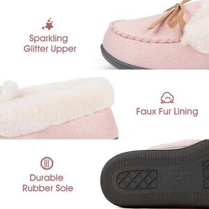 Women's Glittered Moccasin Faux Fur Lining Wrap Rubber Sole Pink Slipper Bootie