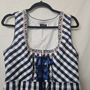 Womens Glory Star Sz Large Milkmaid Dress Gingham Navy White Coquette Renaissance Cottagecore