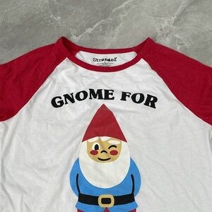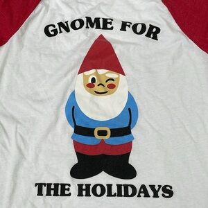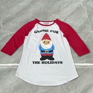 Good condition - Women's “Gnome For The Holidays” Stranded 3/4th Sleeve Christmas Shirt. Colors: white, red, black, blue, and yellow. Size: XL.