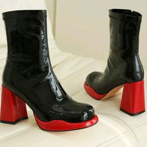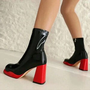 Women's Go Go Boots Platform Chunky Block Heel Boots Prom Square Toe Side Zipper