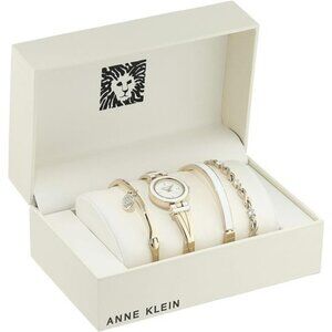 Womens Gold Bangle Watch Set with Crystal Accent Bracelets Quartz Jewelry