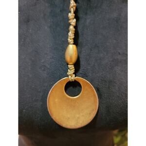 Women's Gold Circle Pendant Necklace with Braided Cord and Unique Bead Design