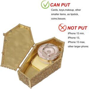 Women's Gold Cool Skull Evening Coffin Shaped Hand bag Cross Rhinestone Bag