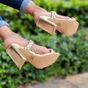 Women's Gold Double Braided Square Toe Mule Heel Sandal