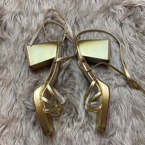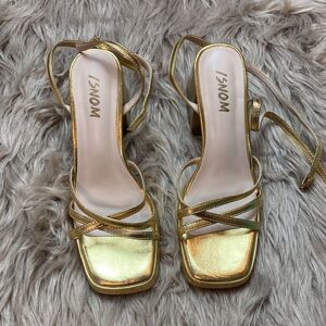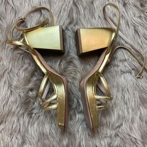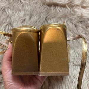 Step out in style with these stunning gold heels by . Perfect for any occasion, these shoes add a touch of elegance to your outfit.