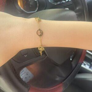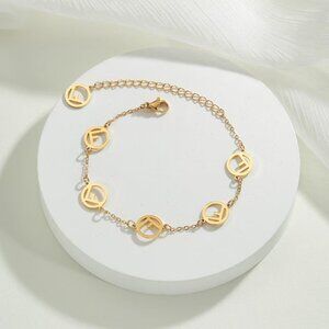 Features: Elegant 18K gold-plated bracelet featuring a bold F letter design. The cable chain is lightweight yet durable, with a strong lobster clasp for easy wear. It's versatile enough to be worn alone for a minimalist look or stacked with other jewelry for a personalized style. Crafted from anti-allergic, anti-fading brass, perfect for sensitive skin.