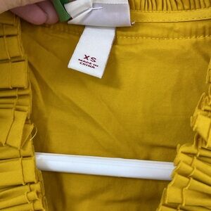 Elevate your style with this chic mustard ruffle V-neck top. Perfect for any occasion, this top adds a touch of elegance to your wardrobe. Recently dry cleaned