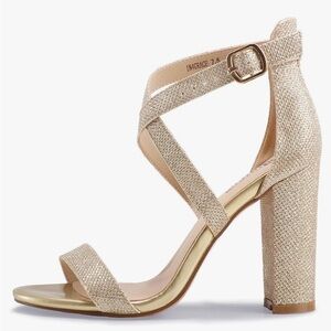 Whether for a night out, a special event, or adding a touch of glam to your everyday look, these gold shimmer heels will elevate your style effortlessly.