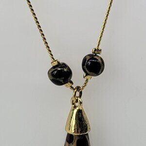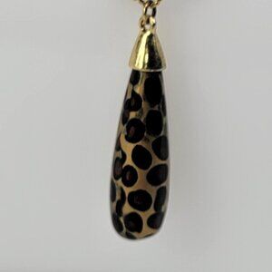 Women's Gold Tone Animal Print Pendant Beaded Chain Necklace & Pierced Earrings