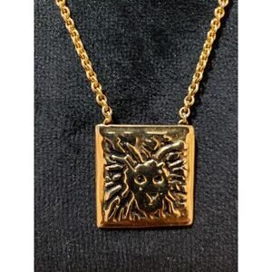 Womens Gold Tone Anne Klein Lion Head Square Pendant Necklace /Spring Ring Clasp