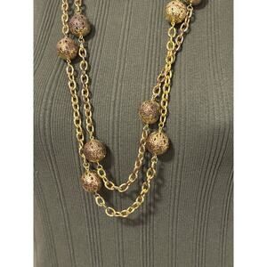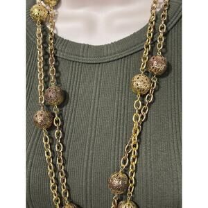 Women's Gold Tone Chain Ball Chunky Long Necklace Statement Neutral Timeless
