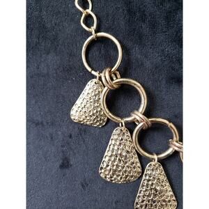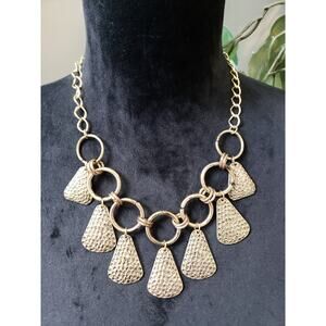 Women's Gold Tone Chunky Statement Necklace Textured Dangle Charm Circle Lock