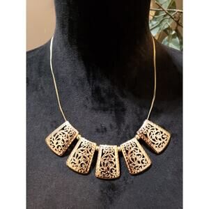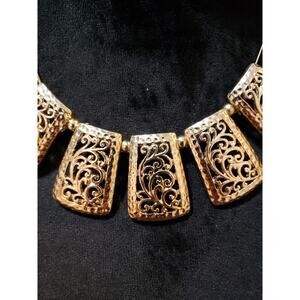 Womens Gold Tone Triple String Chains Filigree Cannetille Statement Necklace.