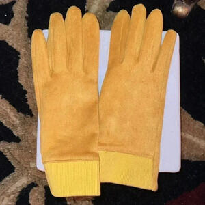 Women’s Gold Vegan Suede Gloves NWT extremely Soft Velvet Inside. One Size fits most - I wear a 7.5 and these gloves are very comfortable for me.