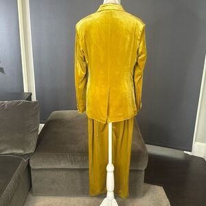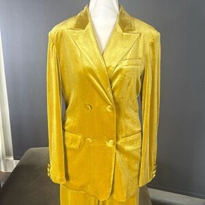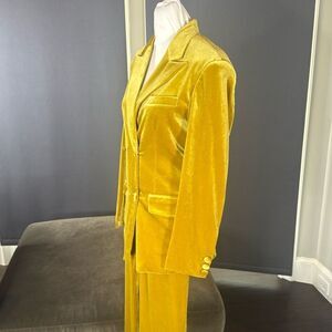 Women’s Gold Velvet 2 Piece Formal Pant Suit Double Breasted Size XS NWOT