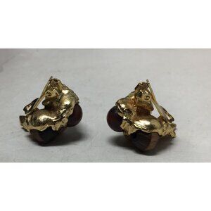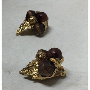 Women's Gold tone and Brown Shiny Acorn Clip on Earrings