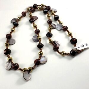 Elevate your jewelry collection with this exquisite Women's Gold-Tone Necklace. Measuring 34 inches in length, this statement piece features a captivating blend of colorful various beads in different sizes and elegant grey shell discs. The gold-tone accents add a touch of luxury to this versatile necklace, making it a perfect accessory to complement your style. NWT