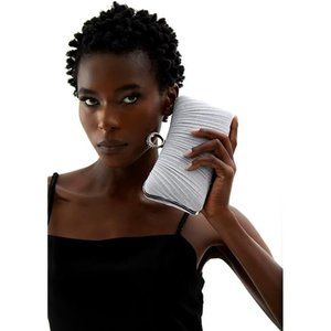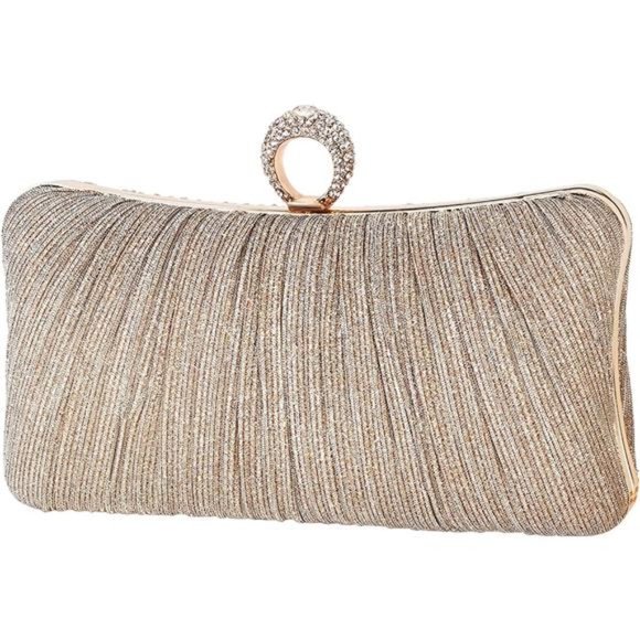 Womens Golden Glitter Clutch Purse Pleated Evening Bag for Bridal Wedding Party