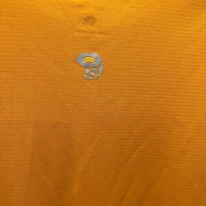 Golden orange women’s Mountain HardWear t-shirt with a small graphic detail. Perfect for casual wear, sporty, outdoor, activewear. Excellent condition, size M