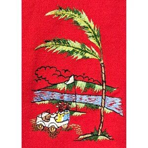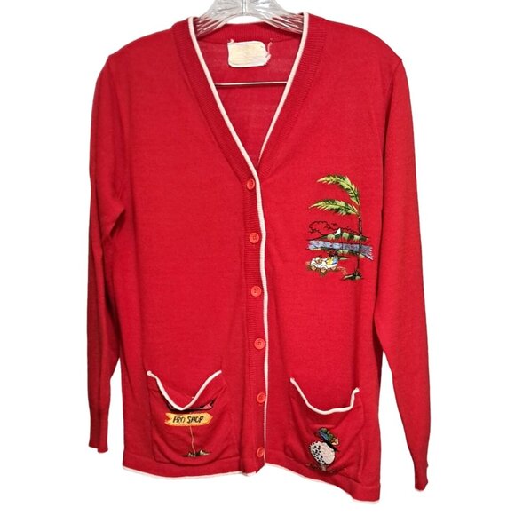 Womens Golf Cardigan Sweater Red Vintage Andrew Argenti Embroidery Acrylic Country Club