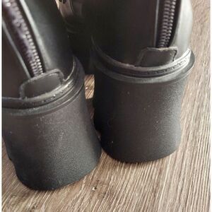 platform combat boots with stud, back zipper,easy put on and off. anti-silp outsole.square round closed toe mid calf boots
