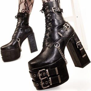 A Silver Hanging Chain Resides Along The Lower Of The Boot,Side Zip Make The Boots Are Very Easy To Take On/Off.