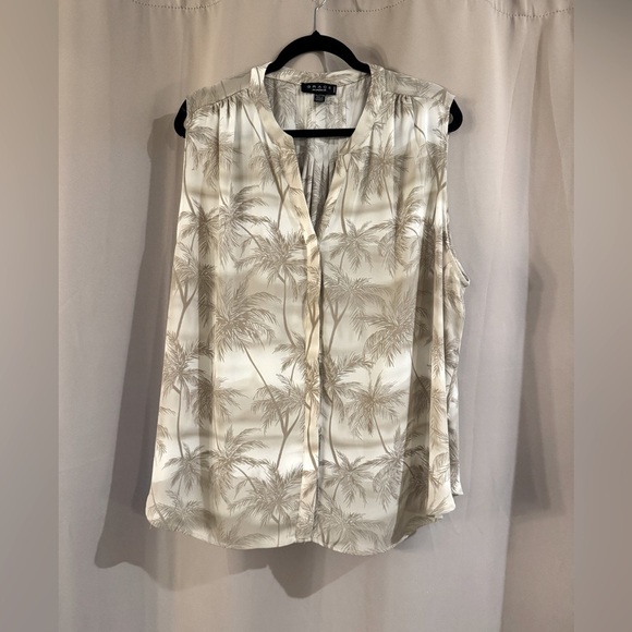 This elegant blouse from Grace features a crisp white color and a relaxed fit, perfect for a casual yet sophisticated look. The sleeveless design and mandarin collar add a touch of modern style, making it a versatile addition to any wardrobe. Ideal for both work and leisure, this blouse offers comfort and chic appeal.