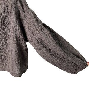 Womens Grade & Gather Peasant Rippled Shirt Gray Relaxed Fit Size Medium u
