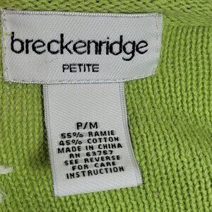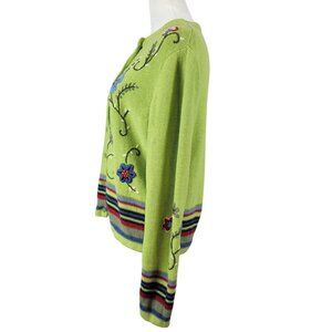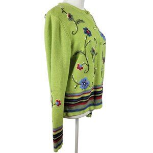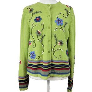 Womens GrandmaCore Retro Floral Cardigan Sweater Green Blues Ramie Knit Petite M