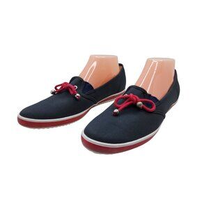Womens GrassHopper Canvas Blue and Red Tie Boat Shoes