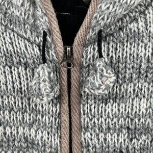 Women's Gray 100% Wool Hooded Knit Jacket | Size XL