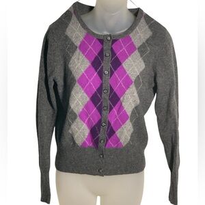 Women’s Gray Argyle Button Front Cashmere Sweater Cardigan