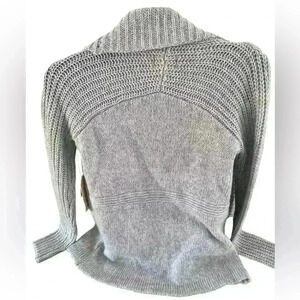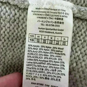 This is a women's gray sweater size small. It is by the brand Burton. It is long sleeves, soft and warm. Excellent condition, it is New with Tags. The sweater is made from 50% Acrylic, 25% Nylon, and 25% Wool. Measurements are approximate: 28" from top of shoulder to bottom hem, 22" under arm to under arm (but it does stretch), and 28" sleeves.