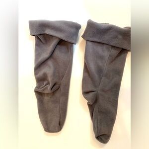 Only worn a few times. Keeps your feet warm by lining your boots. Gray top flips over the top of your boots. I know the tag says “Fits ‘shoe’ size 9-11” but it is a misprint as these for shoe sizes 5-10. I wear a size 7 and these fit perfectly (cover photo). Please keep in mind that if your boot is already skin tight on your calf, these might not fit. Smoke-free home.