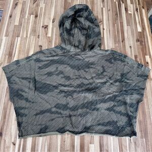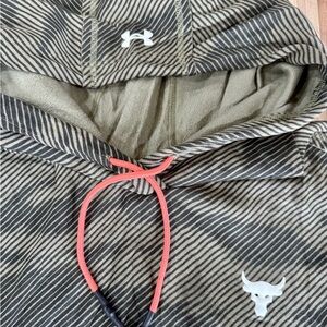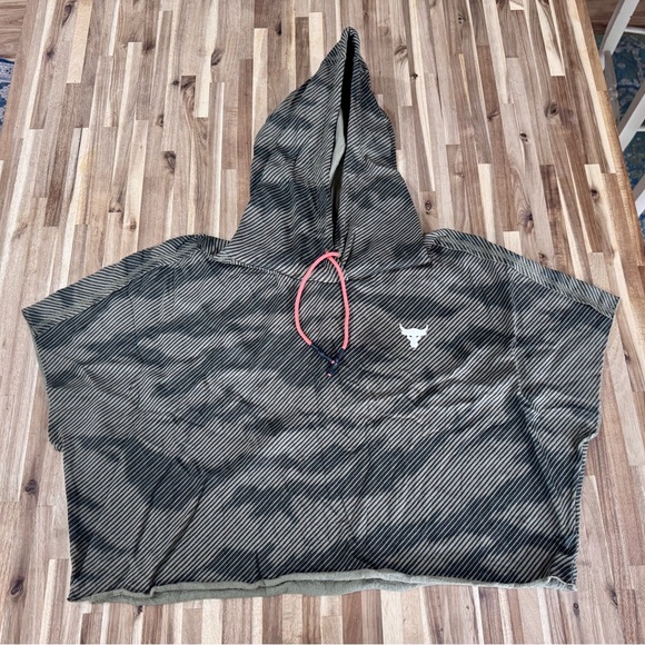 Under Armour hooded poncho in tan with a red drawstring. Ideal for casual outings.