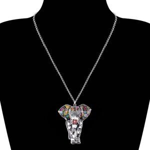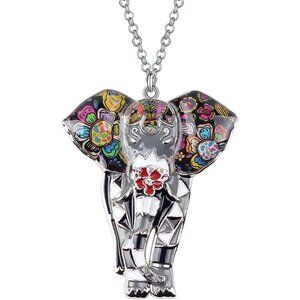 Women's Gray Jungle Safari Wild Enamel Pendant Lightweight Elephant Necklace