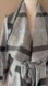 Plaid print draped collar open front coat with matching belt. NOTE: One belt loop is ripped