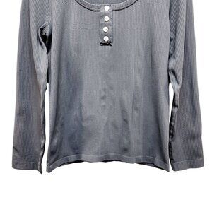 Womens Gray Ribbed Long-Sleeve Henley Top By OQQ Nylon Spandex Blend Size L