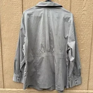 Liz & Me Gray Collared Ruffle Button-Up Blouse Women Plus 1X Cotton Blend