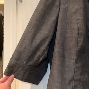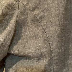 Stylish gray jacket with elegant ruffle detailing. Perfect for adding a touch of sophistication to any outfit.