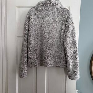 Stay cozy and stylish with this women's gray sherpa jacket. Perfect for chilly days, this jacket offers warmth and comfort.