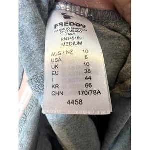 Extremely soft and comfortable stretch. Freddy lists them as mid-rise, but they fit low, about an inch below the belly button. Excellent used condition, no flaws.