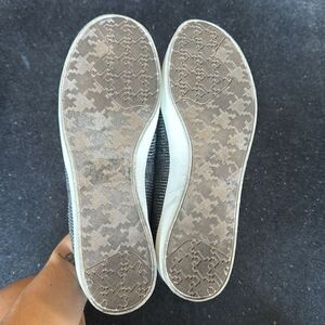 Step out in style with these chic gray slip-on sneakers. Perfect for casual outings, these shoes offer both comfort and elegance.