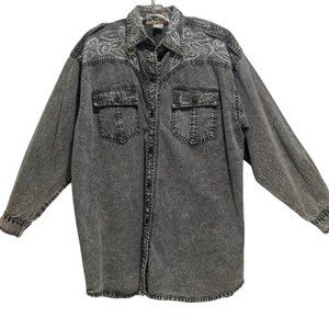 Women's Gray Stonewash Sequence Button Up Front Cotton Denim Cowboy Shirt Medium