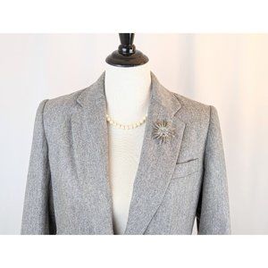 Women's Gray Wool Fitted Blazer Jacket Sz M Vintage 1980s Ladies Grey Wool Coat